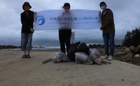 本會黃河清董事長,帶領大誠工業股份有限公司員工,在新竹縣竹北市的尚海灘進行淨灘活動。